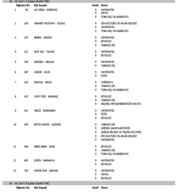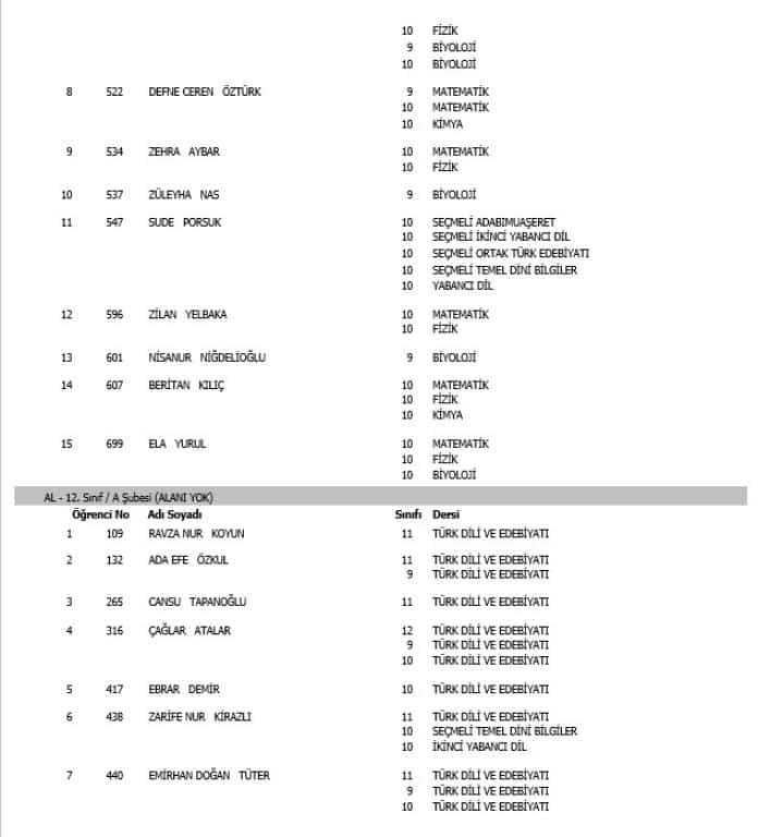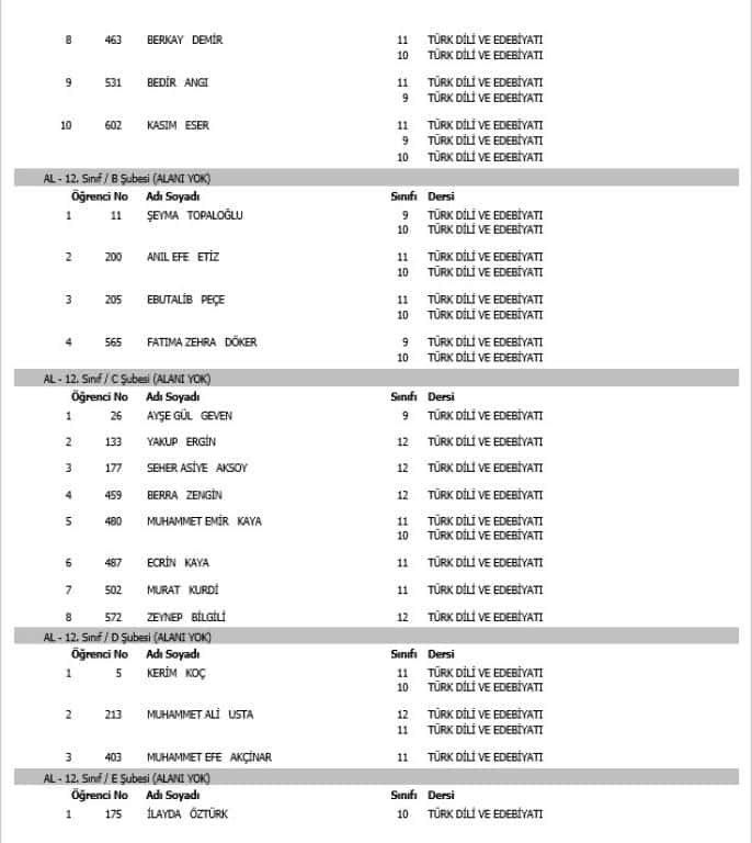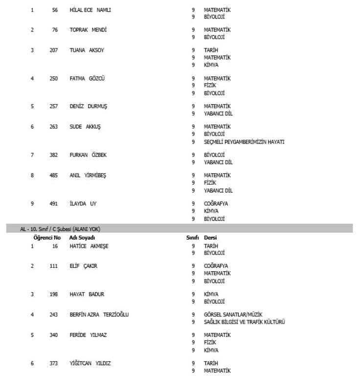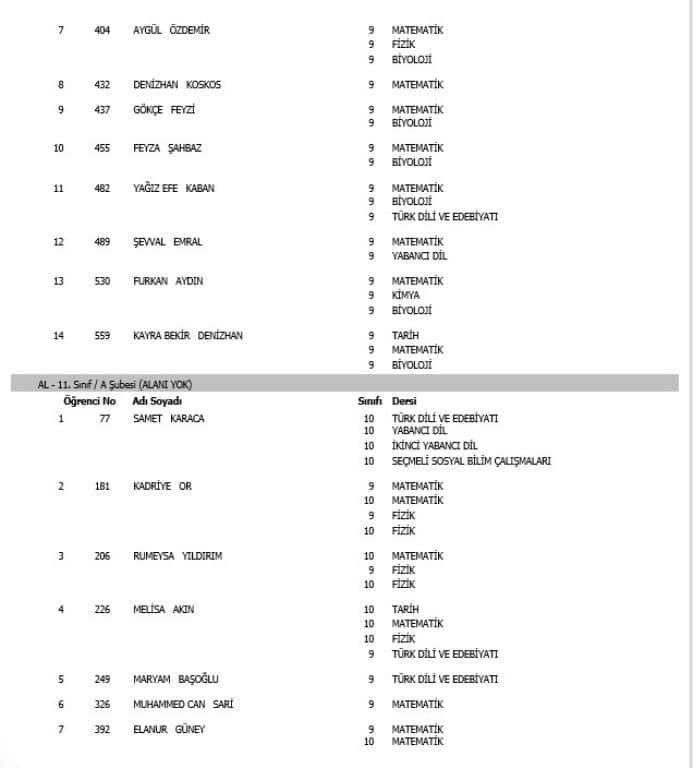 2025 EYLÜL DÖNEMİ Sorumlu Dersi Olan Öğrenciler ve Dersleri
